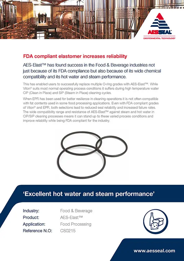 AES-Elast™ has found success in the Food & Beverage industries not just because of its FDA compliance but also because of its wide chemical compatibility and its hot water and steam performance.