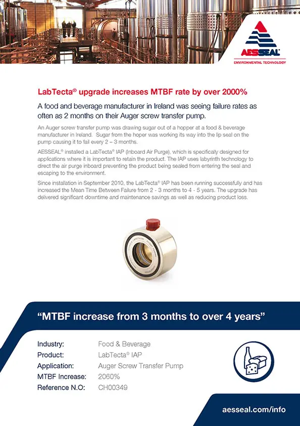 A food and beverage manufacturer in Ireland was seeing failure rates as often as 2 months on their Auger screw transfer pump.