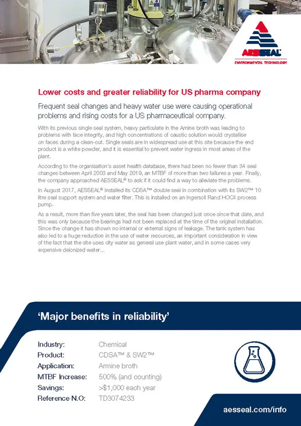 Frequent seal changes and heavy water use were causing operational problems and rising costs for a US pharmaceutical company.
